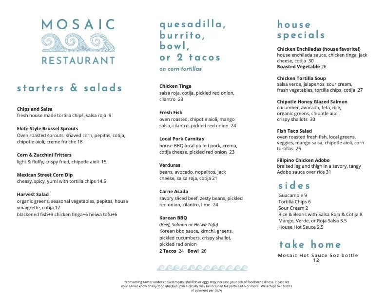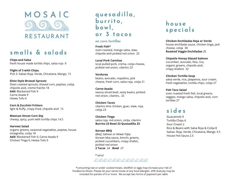 Our menu changes frequently with daily specials!View our sample menu below or visit our Toast takeout menu to view today’s offerings.